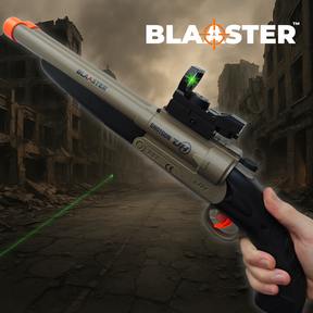 Blaaster™ TwinBlast on 54 cm pitkä kaksipiippuinen blasteri, joka yhdistää realistiset hylsyt, automaattisen ulosheiton ja mahdollisuuden ampua joko isot pehmoammukset tai useita pieniä panoksia kerralla. Lataa, sulje piiput ja vedä liipaisimesta – hylsyt sinkoutuvat ulos kuin oikeassa aseessa!